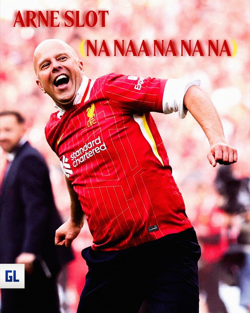 Còn điều gì tuyệt vời hơn việc vô địch sớm và “đè bẹp” đối thủ 5-1 mà các cổ động viên Liverpool muốn thấy? Đó là tinh thần nhân tài trọng nhân tài. Sau khi vô địch, Slot đã hát vang tên của Jurgen Klopp như một lời tri ân gửi đến người tiền nhiệm. 5 năm qua, cả 2 vị chiến lược gia này đã đem về 2 chức vô địch Ngoại Hạng Anh cho sân Anfield, đó là những thành tích đáng nể vô cùng. Cổ động viên của Liverpool thì luôn luôn cuồng nhiệt, một bữa tiệc ăn mừng sớm đã được thực hiện. Chắc hẳn giờ đây chính họ là những fan bóng đá hạnh phúc nhất, một chức vô địch không chỉ đánh dấu cột mốc lịch sử, mà đó còn là chức vô địch đánh dấu cho một thời đại mới tại Anfield mang tên: Arne Slot.